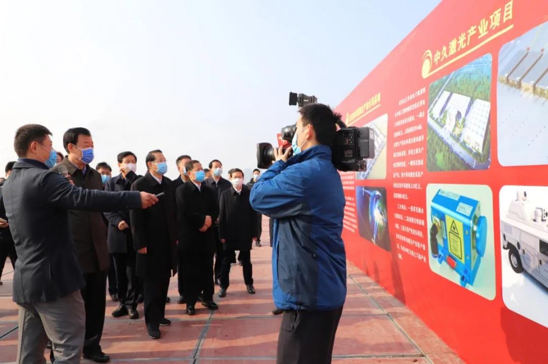 曾智斌董事長(zhǎng)和李中煜總裁向省委、省政府主要領(lǐng)導(dǎo)介紹中久激光產(chǎn)業(yè)項(xiàng)目情況