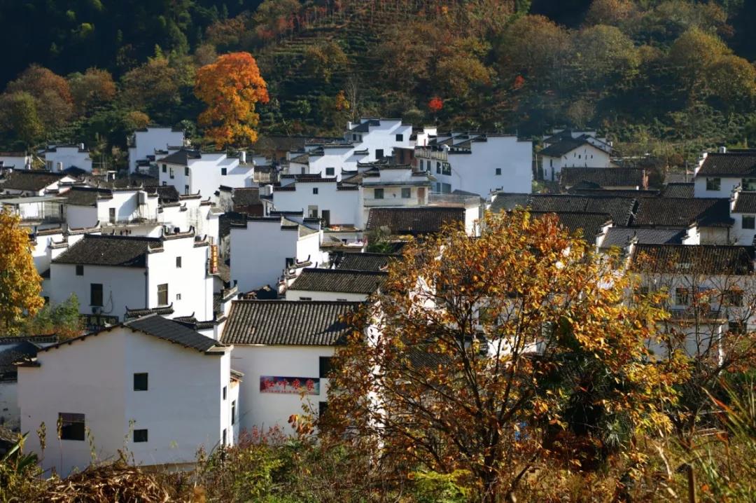 每當(dāng)日出山頭,晨曦初照,整個山間村落間,那飽經(jīng)滄桑的徽式民宿的土磚外墻與長長木架上,圓圓的竹匾里五彩繽紛的豐收果實排列組合,繪就出“曬秋”農(nóng)俗景觀,甚是壯觀。