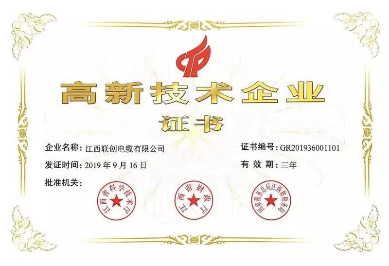 此次通過復評認定,是對聯創電力纜在科技研發實力、企業盈利與發展能力等方面的肯定與認可,同時也是對聯創電力纜持續科技創新的激勵與鞭策。聯創電力纜將以此為契機,不斷提高技術創新能力,充分發揮高新技術企業的優勢和模范帶頭作用,推動企業持續健康發展。