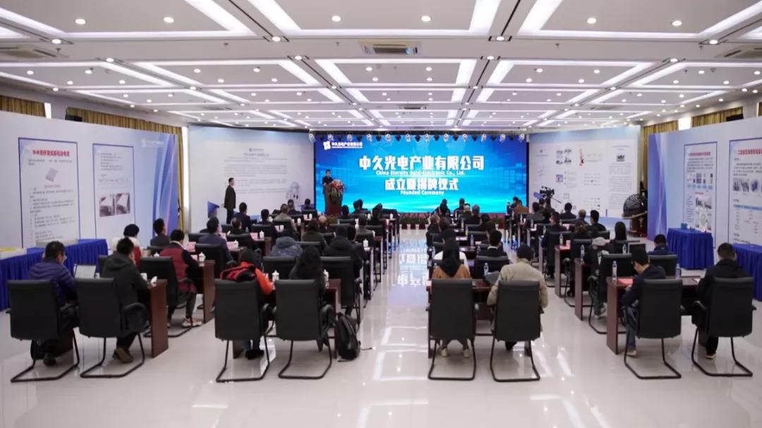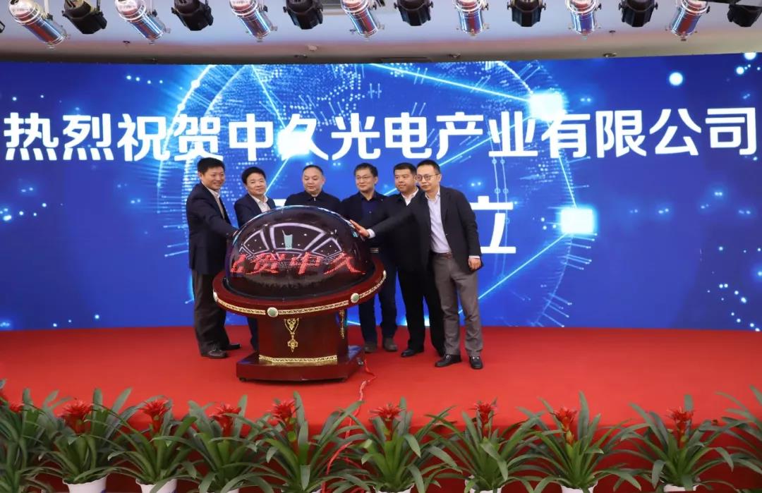 江西省委軍民融合辦常務副主任涂瓊理,中國某電子研究所所長趙劍衡,南昌市委常委、副市長滕俊峰,江西省工商聯黨組成員、副主席洪躍平,中國某電子研究所副所長陳門雪,南昌市委軍民融合辦主任胡俊峰,南昌高新區黨工委委員、管委會副主任楊曉輝,聯創光電董事長曾智斌,中久光電董事長兼總經理李中煜共同為中久光電揭牌