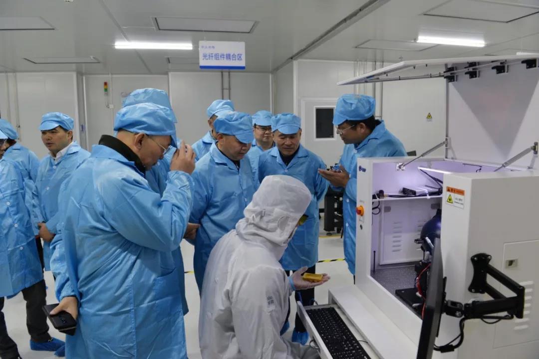 揭牌儀式后,各級領導前往中久光電產線參觀,實地考察了激光器產品的生產工藝及加工生產線。